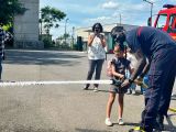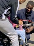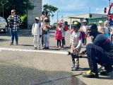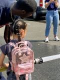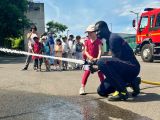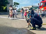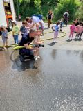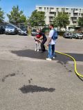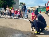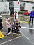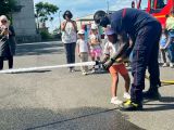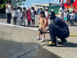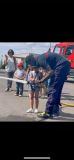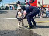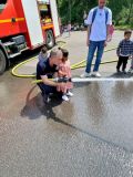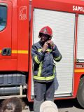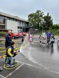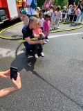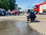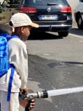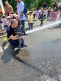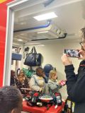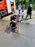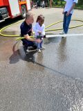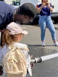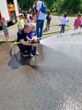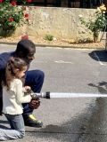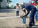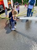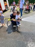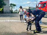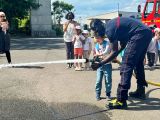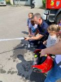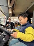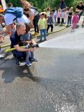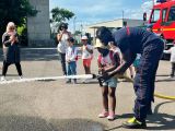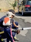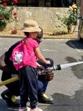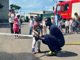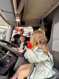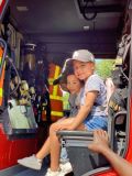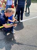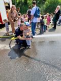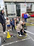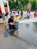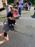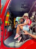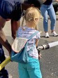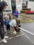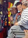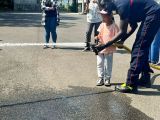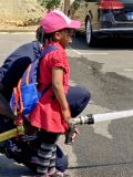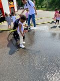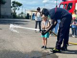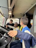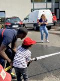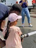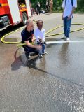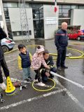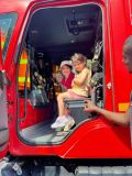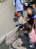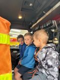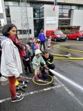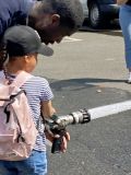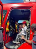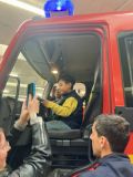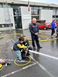 Ils sont montés dans l'un des camions et ont pu expérimenter la tenue de la lance à incendie.